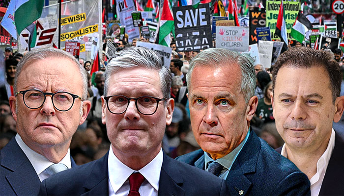 برطانوی وزیراعظم سر کیئر اسٹارمر نے سوشل میڈیا پر جاری ویڈیو پیغام میں فلسطین کو تسلیم کرنے کا باضابطہ اعلان کیا۔کینیڈین وزیراعظم مارک کارنی نے بھی سوشل میڈیا پر جاری پیغام میں کہا کہ کینیڈا ریاست فلسطین کو تسلیم کرتا ہے اور ریاست فلسطین کے پرامن مستقبل کے وعدے کی تعمیر میں اپنی شراکت کی پیشکش کرتا ہے۔