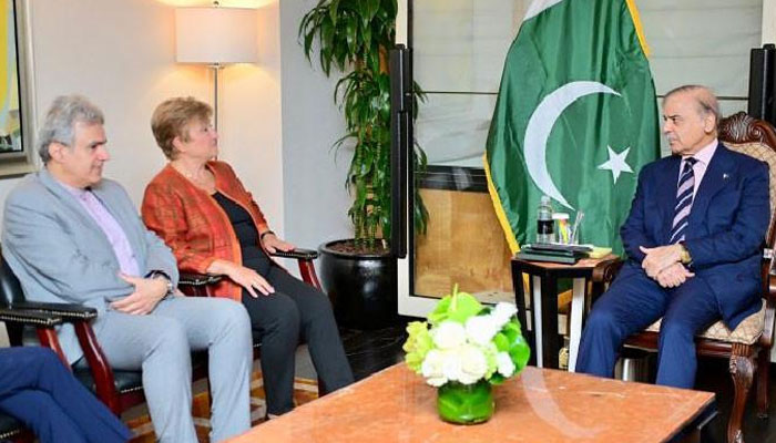 اقوام متحدہ کی جنرل اسمبلی کے 80 ویں اجلاس کے موقع پر وزیراعظم شہباز شریف نے عالمی مالیاتی فنڈ (آئی ایم ایف) کی مینیجنگ ڈائریکٹر کرسٹالینا جارجیوا سے ملاقات کی۔
