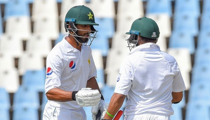 قذافی اسٹیڈیم میں پاکستان بمقابلہ جنوبی افریقا — پہلے ٹیسٹ کی پہلی اننگز میں پاکستان کی بیٹنگ جاری