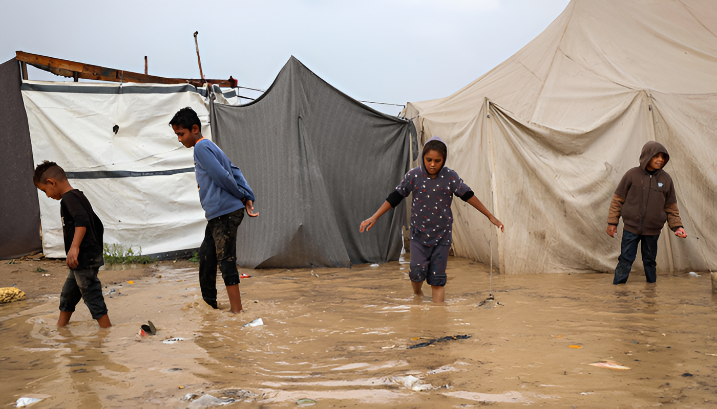 غزہ میں موسم سرما کی بارش کے بعد اسرائیلی حملوں سے تباہ حال فلسطینی عوام کی مشکلات میں اضافہ ہوگیا ہے۔ عرب میڈیا کے مطابق شدید سردی اور بارش کے باعث بے گھر فلسطینی افراد کے خیموں اور اسپتالوں میں پانی داخل ہوگیا ہے، جس سے انسانی مشکلات مزید بڑھ گئی ہیں۔
