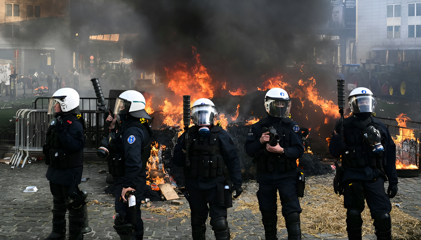 بیلجیم کے دارالحکومت برسلز میں یورپی یونین کی زرعی پالیسی کے خلاف کسانوں کا احتجاج، سڑکیں بند، پولیس سے جھڑپیں