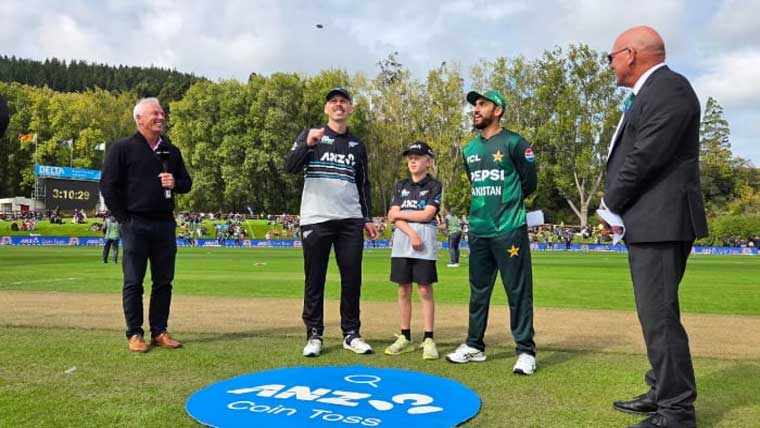 ویلنگٹن:میزبان نیوزی لینڈ نے پانچویں اور آخری ٹی 20 میں پاکستان کیخلاف ٹاس جیت کر پہلے باؤلنگ کا فیصلہ کیا ہے۔