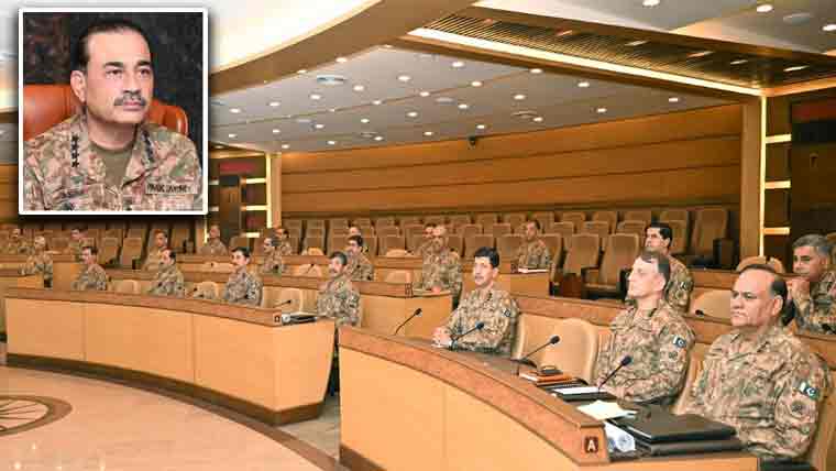 جنرل سید عاصم منیر نے کہا کہ غیر قانونی سر گرمیاں دہشت گردی کی مالی معاونت سے اندرونی طور پر جڑی ہوئی ہیں، پاکستان میں دہشت گردوں اور ان کے سہولت کاروں کے لیے کوئی جگہ نہیں ہے۔فورم نے بھارت کی غیر قانونی طور پر مقبوضہ جموں و کشمیر میں انسانی حقوق کی جاری سنگین خلاف ورزیوں پر گہری تشویش کا اظہار کیا اور لائن آف کنٹرول پر بھارتی فوج کی بلا اشتعال جنگ بندی کی خلاف ورزیوں پر بھی خدشات ظاہر کئے۔کورکمانڈرز کانفرنس نے بھارت کے غیر قانونی طور پر مقبوضہ جموں و کشمیر کے عوام کے منصفانہ حقوق کے لیے پاکستان کی پُر زور اور غیر متزلزل حمایت پر زور دیا۔