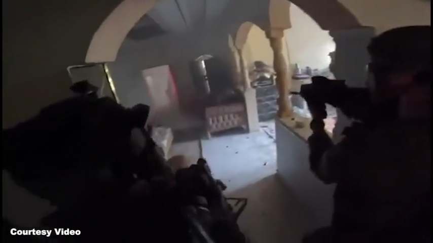 عرب میڈیا کی جانب سے جاری کی گئی ویڈیو میں اسرائیلی فوجیوں کو جان بچا کر بھاگتے ہوئے دیکھا جاسکتا ہے۔یہ ویڈیو ایک اسرائیلی فوجی کے ہیلمٹ پر لگے کیمرے سے بنائی گئی جس میں دیکھا جاسکتا اسرائیلی فوجیوں کا دستہ ایک مکان میں موجود ہے جبکہ کچھ فوجی مکان کی بالائی منزل پر جارہے ہیں کہ اسی دوران ان پر فائرنگ شروع ہوجاتی ہے۔