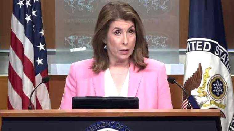 ترجمان امریکی محکمہ خارجہ ٹیمی بروس نے پریس کانفرنس کرتے ہوئے کہا کہ پاکستان اور بھارت کے درمیان اب جنگ بندی ہے، جانتے ہیں پاکستان اور بھارت مکمل جنگ شروع کرنے کے بہت قریب تھے، امریکا کی مدد نے پاک بھارت جنگ کو روکنے میں کردار ادا کیا جو خوش آئند ہے۔ٹیمی بروس نے کہا کہ جنگ بندی سے طویل مدتی مسائل کے حل ہونے کی صلاحیت واپس آگئی، اچھی خبر یہ ہے دوسرے خطوں کے برعکس جنگ بندی کاعہد کیا گیا ہے۔انہوں نے کہا کہ واشنگٹن میں اسرائیلی سفارتی اہلکاروں کے قتل کی مذمت کرتے ہیں، ہم چاہتے ہیں کہ غزہ میں متاثرین تک امداد پہنچے، ایران کے ساتھ مذاکرات کا پانچواں دور ہو رہا ہے، ہم سمجھتے ہیں ایران کے ساتھ مذاکرات میں پیش رفت ہو رہی ہے۔